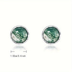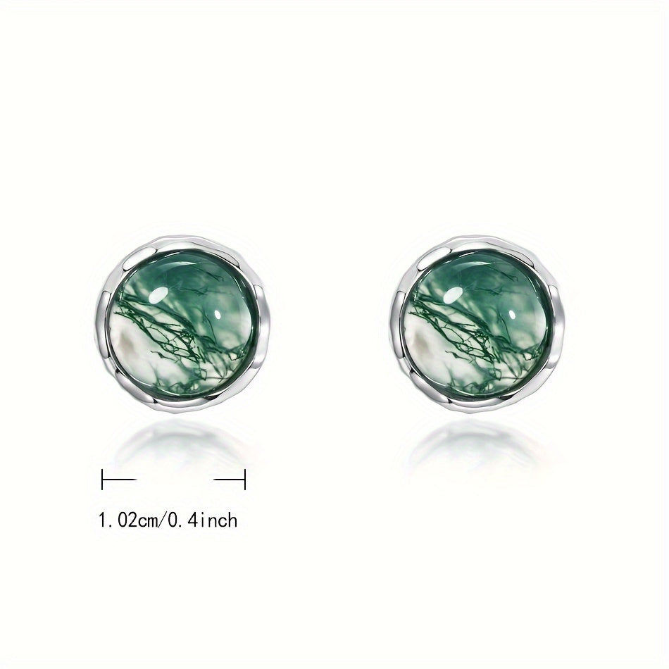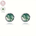 925 Sterling Silver Round Stud Earrings Inlaid Green Color Moss Agate Temperament Ear Piercing Jewelry Gifts For Women With Gift Box