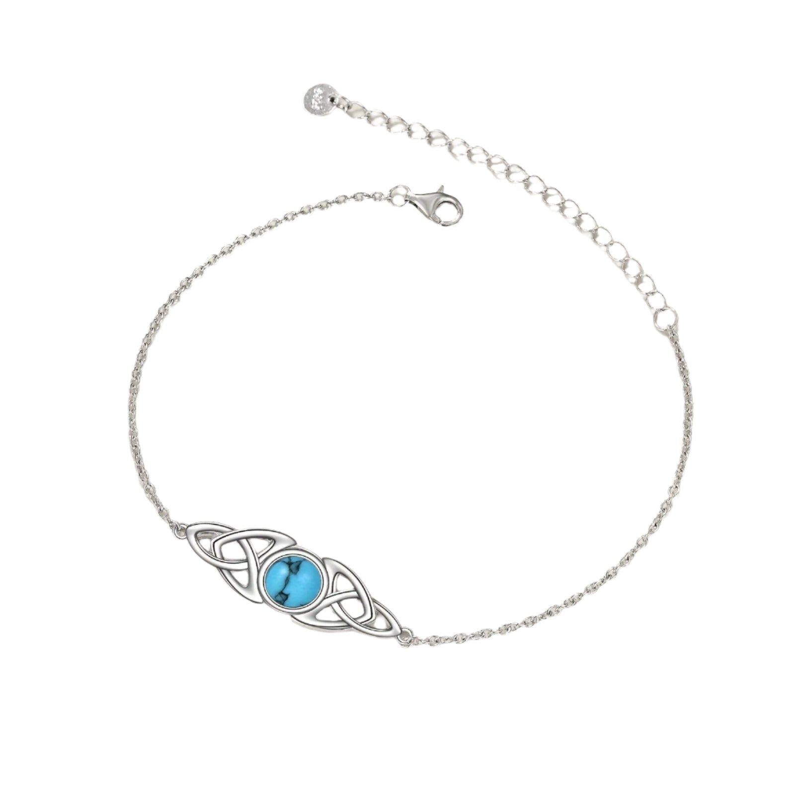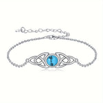 Celtic Trinity Knot Women's Bracelet With 1 Piece Of Turquoise Gemstone, 925 Sterling Silver Jewelry, Silvery Weight 4g.