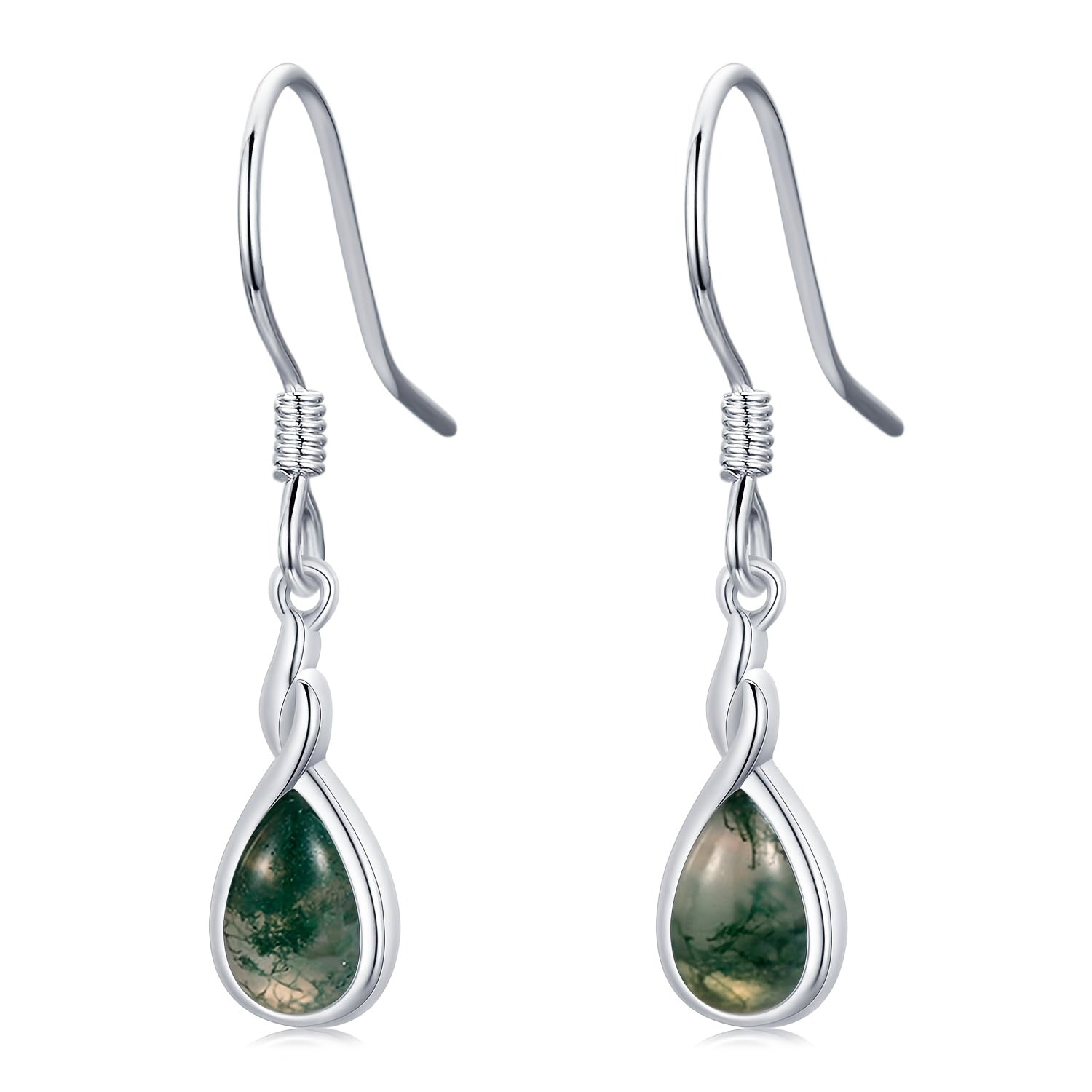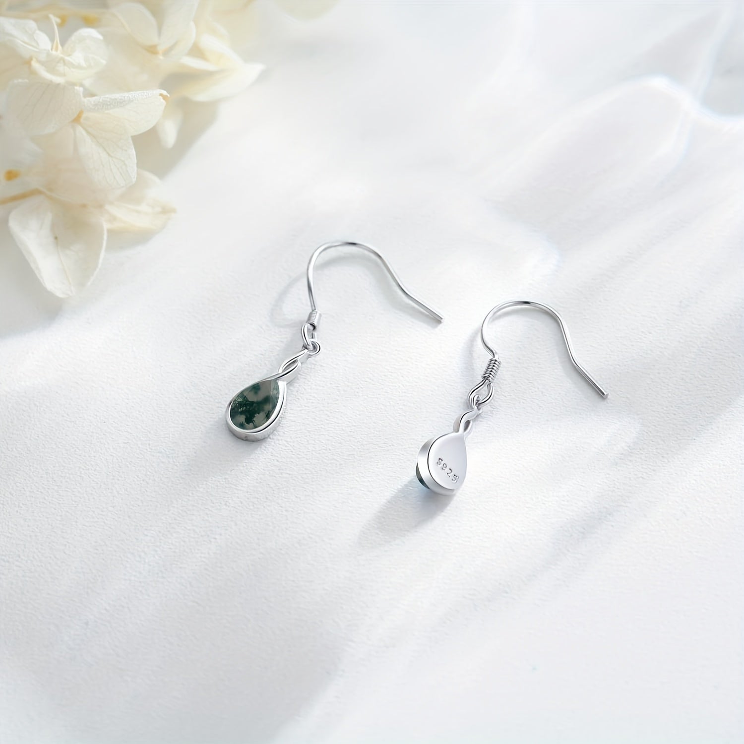 Moss Agate Earrings 925 Pure Silvery Agate Earrings