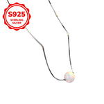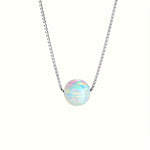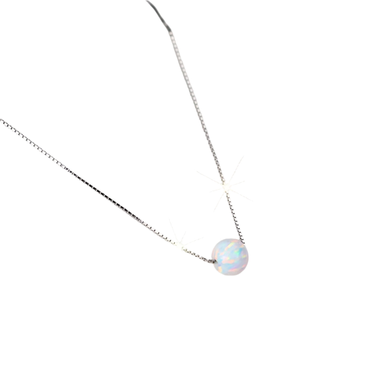 925 Sterling Silver Round Ball White Opal Pendant Necklace
